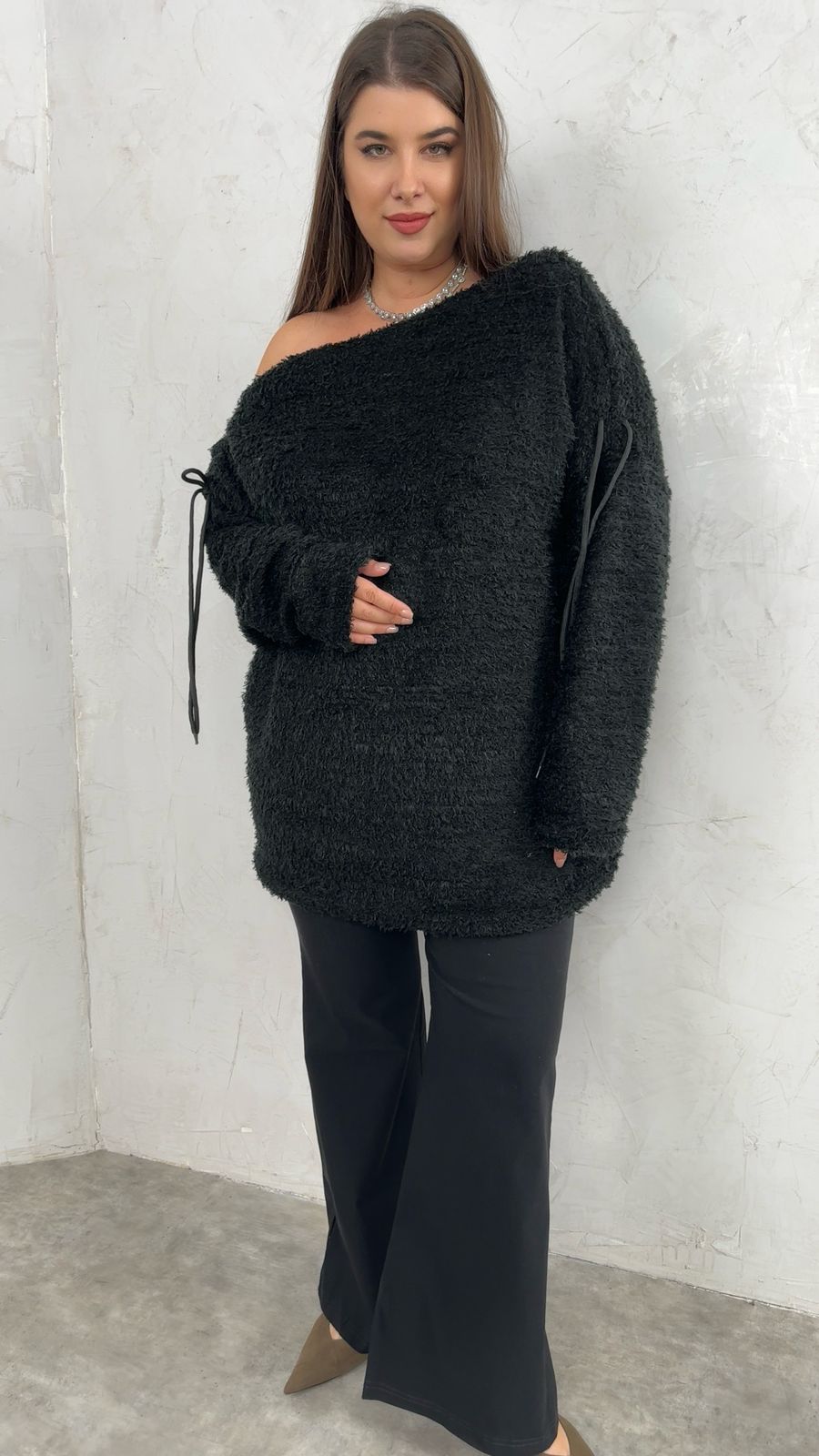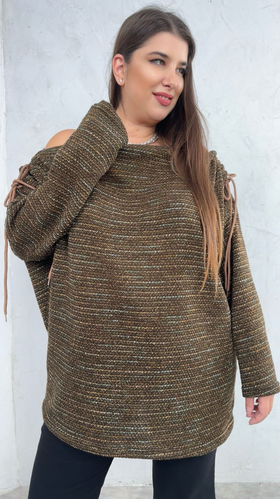 Μπλούζα πλεκτή κοπής με ανοιχτό λαιμό και κορδόνια που σουρώνουν και απο τις δυο μεριές