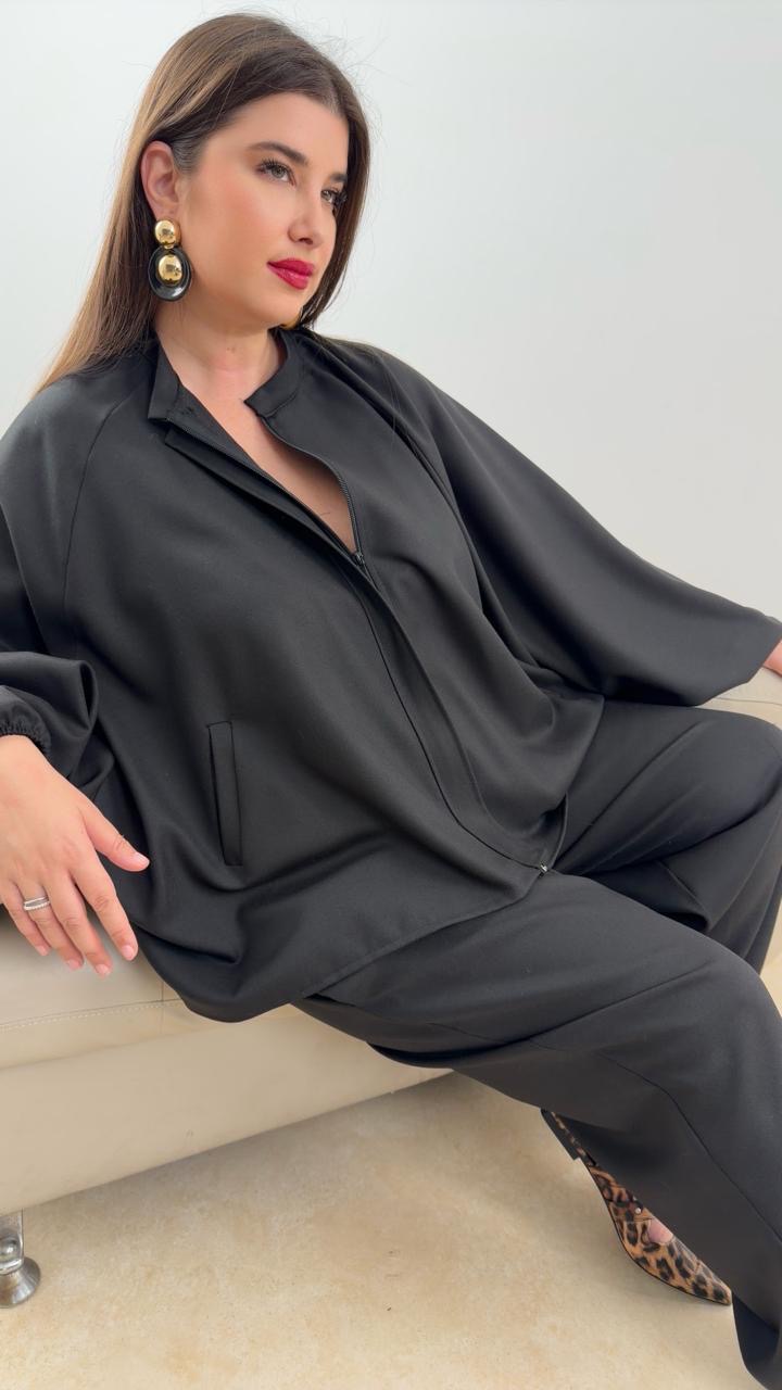 Σετ που αποτελείται από δύο τεμάχια μία ζακέτα σε φαρδιά γραμμή με φερμουάρ και ένα παντελόνι σε φαρδιά γραμμή με λάστιχο στη μέση