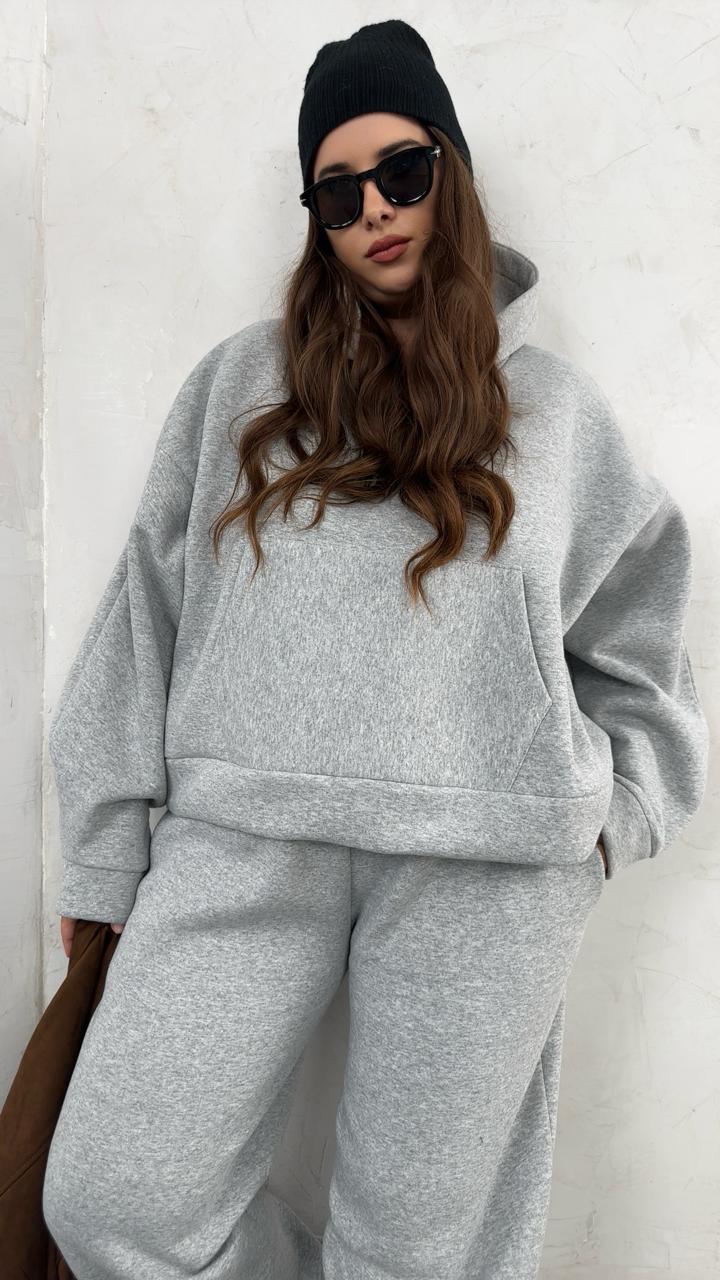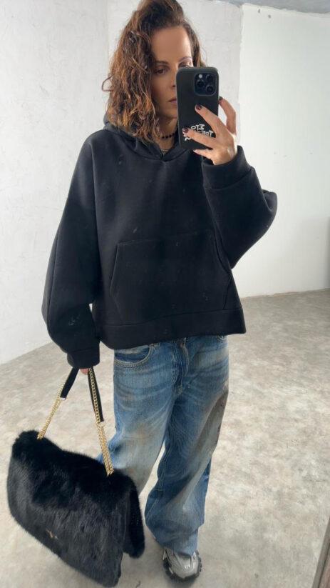 Φουτερ με κουκούλα, κοντό με χνουδι και τσέπη καγκουρό