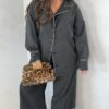 Two-piece set featuring a loose-fit top with side slits and relaxed-fit pants with an elastic waistband.