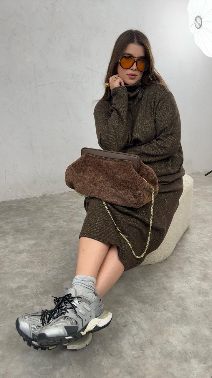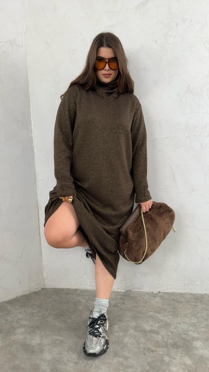 Φόρεμα σάκος σε φαρδιά γραμμή μέχρι τη μέση της γάμπας με φαρδύ λαιμό ψιλό