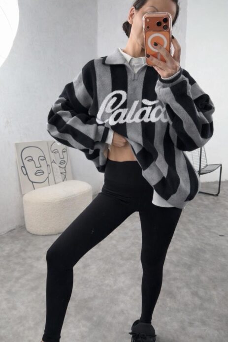 Μπλούζα πλεκτή σε φαρδιά γραμμή με γιακά