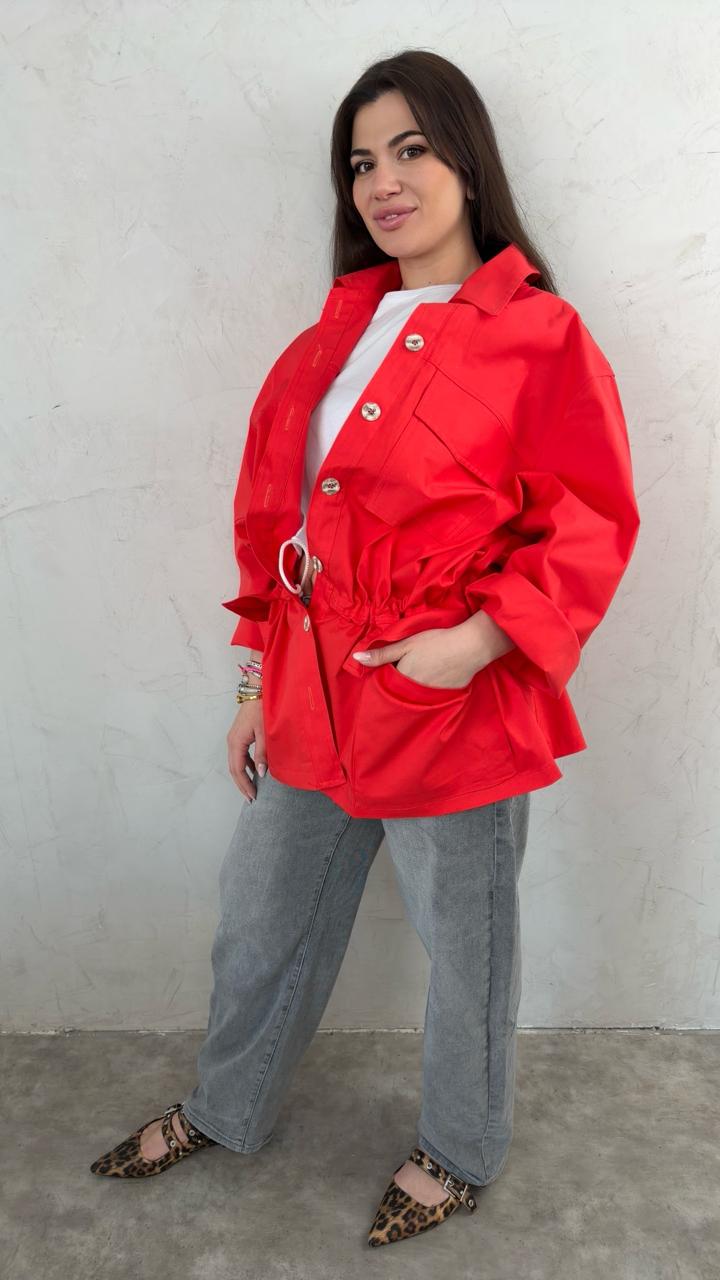 Soft jacket με κουμπιά και πρακτικές τσέπες, που κλείνει στη μέση για θηλυκή εφαρμογή.